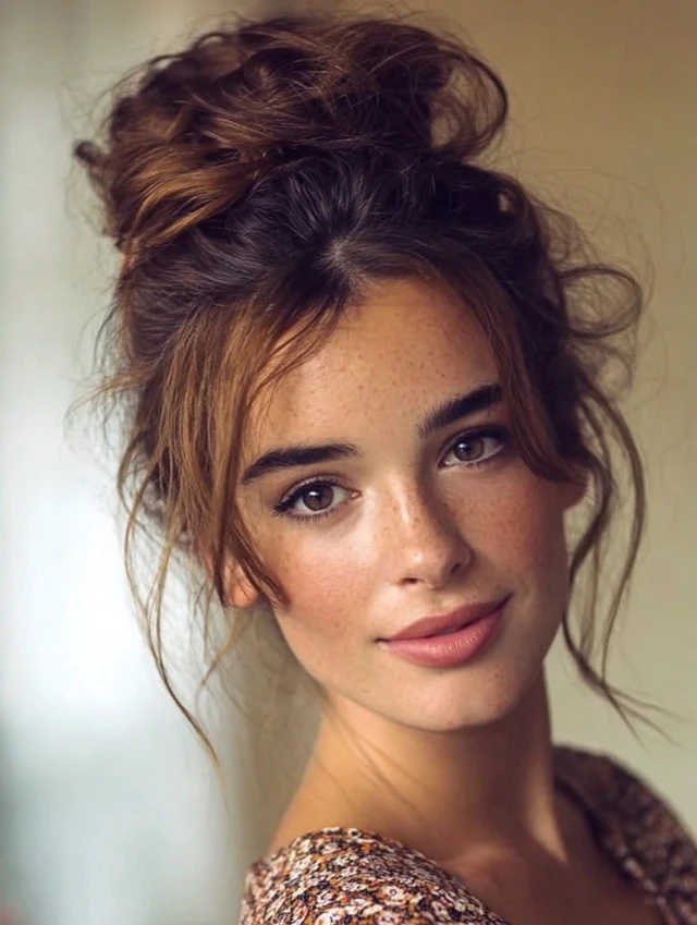 Thick hair creates a perfect messy bun — full, textured, and effortlessly chic.