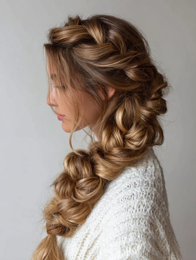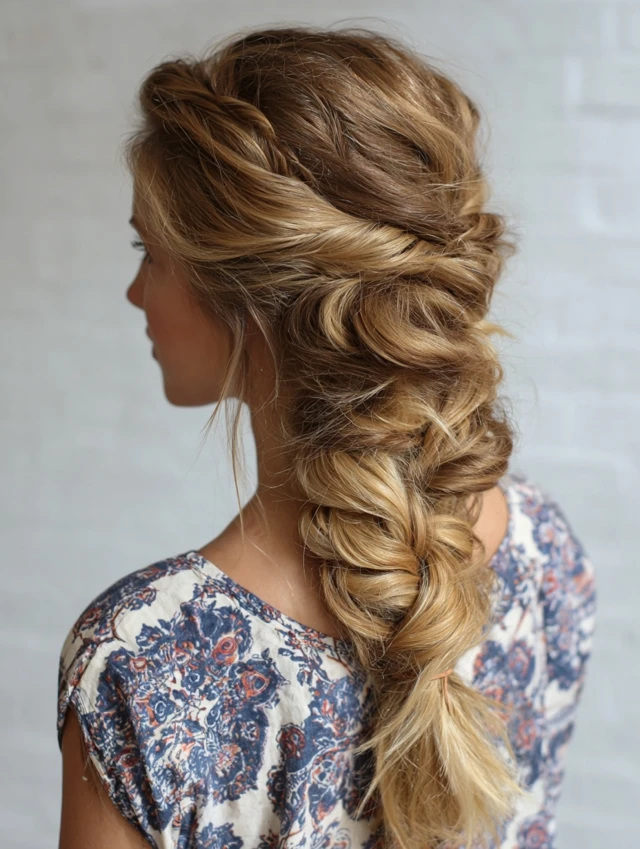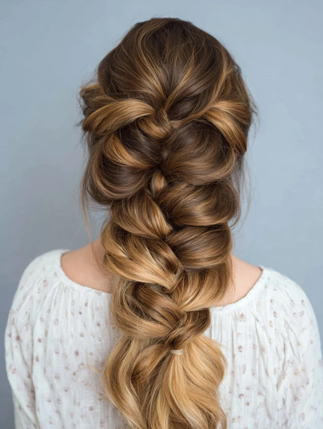 - Braid loosely so the fullness shows.